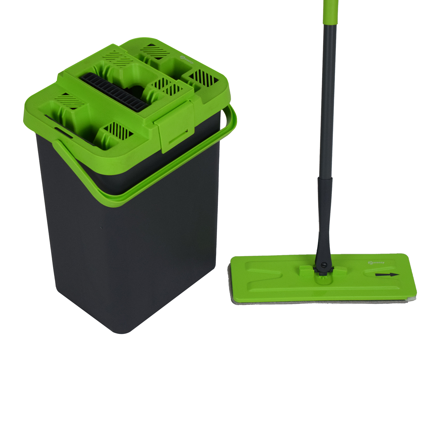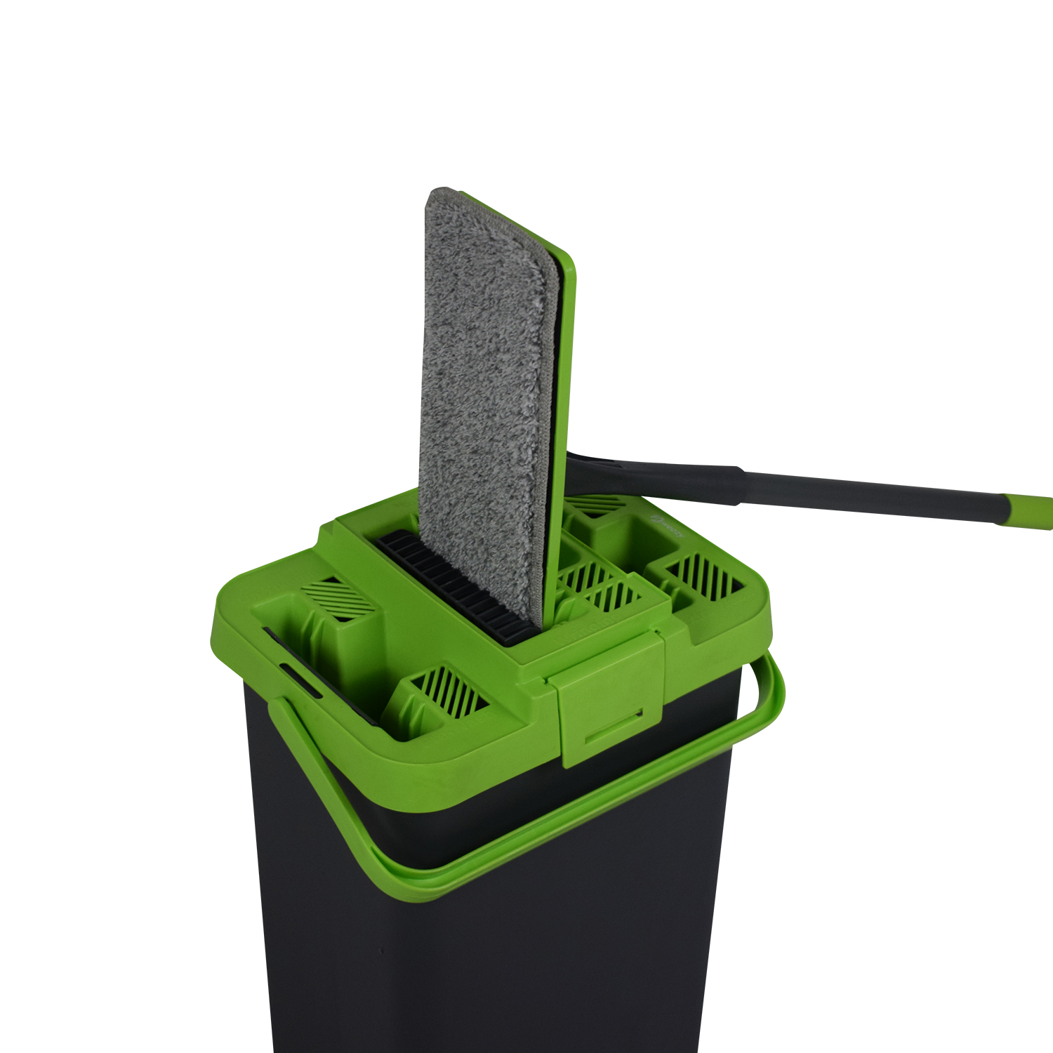 * Kirli ve temiz su için çıkarılabilir haznelere sahiptir ve ekstra hijyenik temizlik sağlar. Kirli suyu bir hazneye alıp daha sonra paspası temiz su ile ıslatmak mümkündür. Bu, paspası her kullanımda temizleyerek hijyenik temizliği artırır.